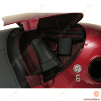 Автосматывание сетевого шнура, ножной переключатель вкл./выкл. на корпусе, вертикальная парковка трубы всасывания на корпусе пылесоса. |