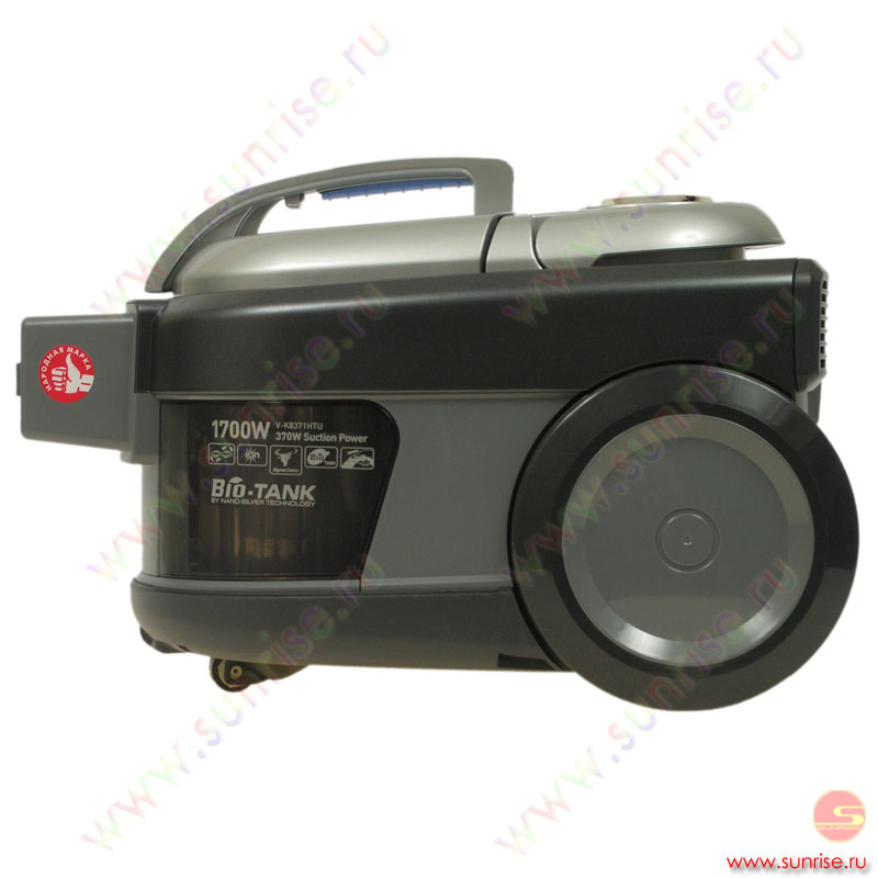 Автосматывание сетевого шнура, вертикальная парковка трубы всасывания на корпусе пылесоса. |